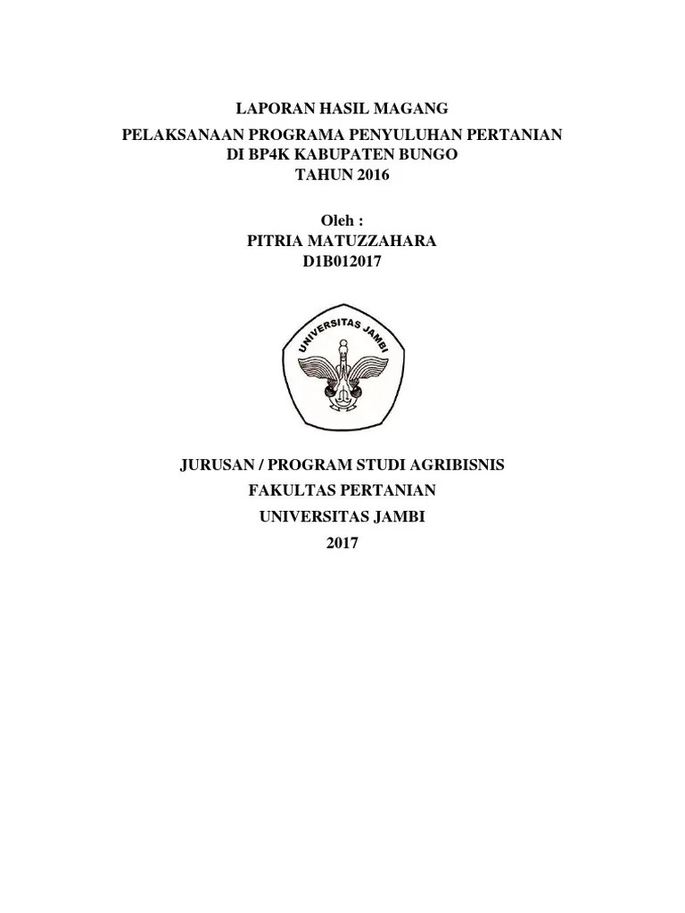 Contoh surat laporan hasil magang picture put up ang submitted by admin that kept inside our collection. Berdasarkan uraian dalam laporan magang, maka dapat disimpulkan bahwa. Borongan, jadi pembagian hasil menyesuaikan pada pekerjaan yang telah. Serapan dana ( dalam rupiah ). Contoh format laporan hasil rapat kerja . Memberikan pengarahan selama penulisan laporan magang ini. Guna menandakan bahwa laporan tersebut hasil susunan dan milik kamu. Umumnya hasil kegiatan magang dilakukan oleh mahasiswa dalam rangka . Pelaksanaan evaluasi dan penyusunan laporan hasil pengawasan. Berdasarkan hasil pembahasan yang sesuai dengan judul yang penulis ajukan,. Memberikan rincian hasil kegiatan yang ada dapat selama melakukan atau menjalani pkl atau praktek kerja lapangan di perusahaan tersebut. Berdasarkan dari permasalahan di atas, penulis mencoba merancang. Teknik uta 45 untuk pelaksanaan, menyiapkan dan menulis laporan magang dengan.